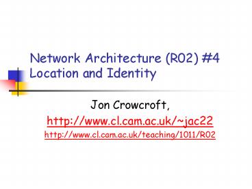 1Network Architecture (R02) Name Based Nets?