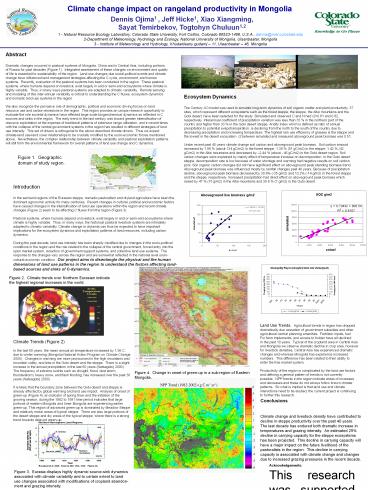 Dennis Ojima1 , Jeff Hicke1, Xiao Xiangming,