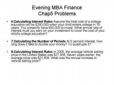Evening MBA Finance Chap5 Problems PowerPoint PPT Presentation