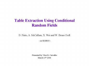 Table Extraction Using Conditional Random Fields PowerPoint PPT Presentation