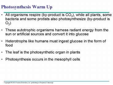 Title: Photosynthesis Warm Up