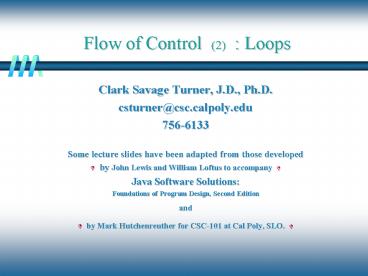 Title: Flow of Control (2) : Loops