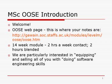 Title: MSc OOSE Introduction