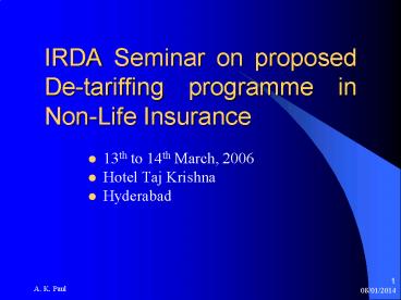 Title: IRDA Seminar on proposed De-tariffing programme in Non-Life Insurance