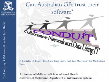 Dr Douglas IR Boyle1, Prof Siaw-Teng Liaw1, Prof
