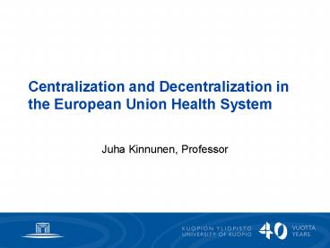 Title: Centralization and Decentralization in the European Union Health System