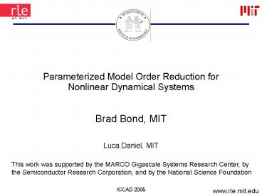 Title: Parameterized Model Order Reduction for Nonlinear Dynamical Systems