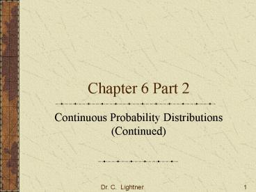 - Continuous Probability Distributions (Continued)