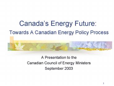 Title: Canadas Energy Future: Towards A Canadian Energy Policy Process