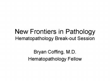 Title: New Frontiers in Pathology Hematopathology Breakout Session