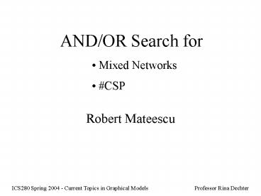 networks to an AND/OR search for CSPs. - OR nodes are initialized with g-value 0