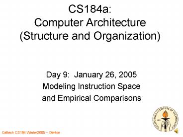 Title: CS184a: Computer Architecture (Structure and Organization)