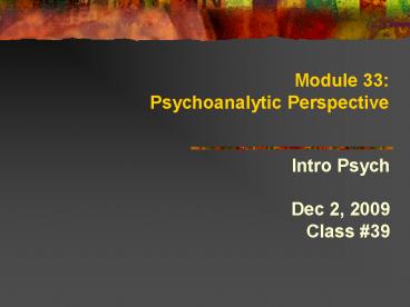 <Notice: Removed> Module 33: Psychoanalytic Perspective PowerPoint PPT Presentation