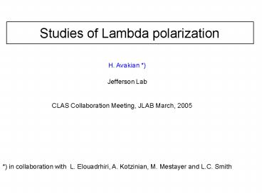 Title: Studies of Lambda polarization