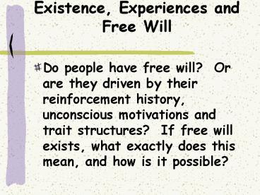 Title: Existence, Experiences and Free Will