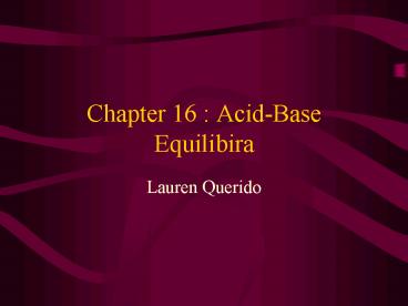 Title: Chapter 16 : Acid-Base Equilibira