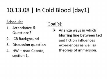 10'13'08 In Cold Blood day1 PowerPoint PPT Presentation