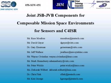 Mr. Russ Moulton rmoulton_at_jrmtech.com Mr.