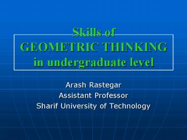 Skills of GEOMETRIC THINKING in undergraduate level PowerPoint PPT Presentation