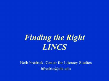 <Notice: Removed> Finding the Right LINCS PowerPoint PPT Presentation