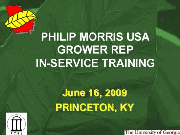 Title: PHILIP MORRIS USA GROWER REP INSERVICE TRAINING