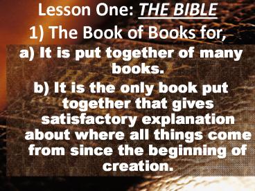Title: Lesson One: THE BIBLE 1 The Book of Books for,