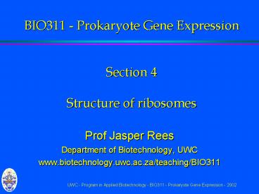 Title: BIO311 Prokaryote Gene Expression Section 4 Structure of ribosomes