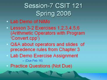 <Notice: Removed> Session-7 CSIT 121 Spring 2006 PowerPoint PPT Presentation