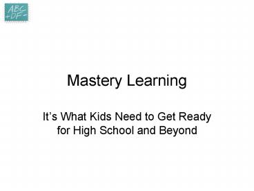 Mastery Learning PowerPoint PPT Presentation