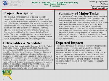<Notice: Removed> SAMPLE PROJECT TITLE SERRI Project No' Start Date End Date $ xxx,xxx PowerPoint PPT Presentation