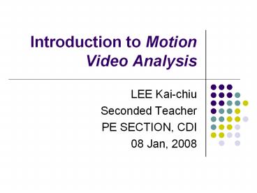 <Notice: Removed> Introduction to Motion Video Analysis PowerPoint PPT Presentation