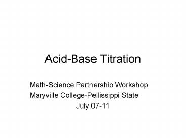 Title: AcidBase Titration