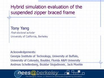 Title: Hybrid simulation evaluation of the suspended zipper braced frame
