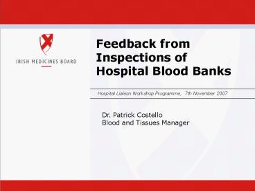 Title: Feedback from Inspections of Hospital Blood Banks