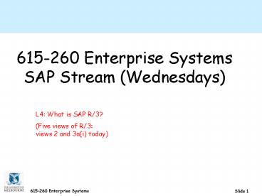 Title: 615260 Enterprise Systems SAP Stream Wednesdays
