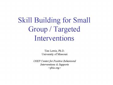 Title: Skill Building for Small Group Targeted Interventions