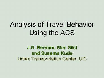 Analysis of Travel Behavior Using the ACS PowerPoint PPT Presentation