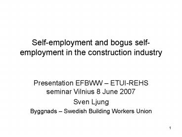 Selfemployment and bogus selfemployment in the construction industry PowerPoint PPT Presentation