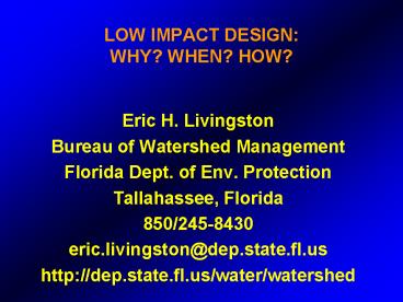Title: LOW IMPACT DESIGN: WHY WHEN HOW