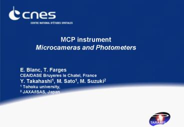 Title: MCP instrument Microcameras and Photometers