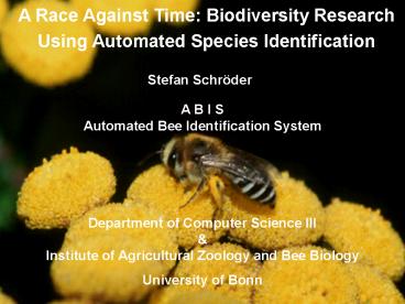 (Entomological Data Information System) - ABIS shares GBIFs goal of making the worlds