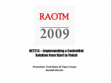 Title: NET213 Implementing a ControlNet Solution from Start to Finish