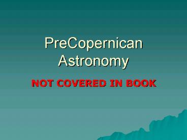 PreCopernican Astronomy PowerPoint PPT Presentation