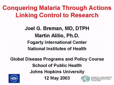 - Joel G. Breman, MD, DTPH