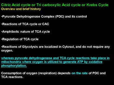 Title: Citric Acid cycle or Tri carboxylic Acid cycle or Krebs Cycle