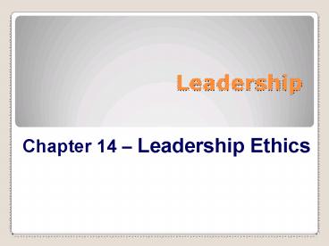 organization and in all walks of life - Because leadership has a moral dimension, being a