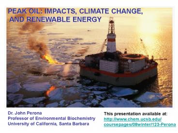 1PEAK OIL IMPACTS, CLIMATE CHANGE, AND RENEWABLE
