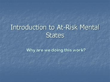 <Notice: Removed> Introduction to At-Risk Mental States PowerPoint PPT Presentation