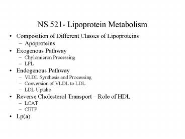 NS 521 Lipoprotein Metabolism PowerPoint PPT Presentation