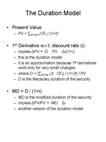 - The duration model (?PV/PV -MD ?i) is only an